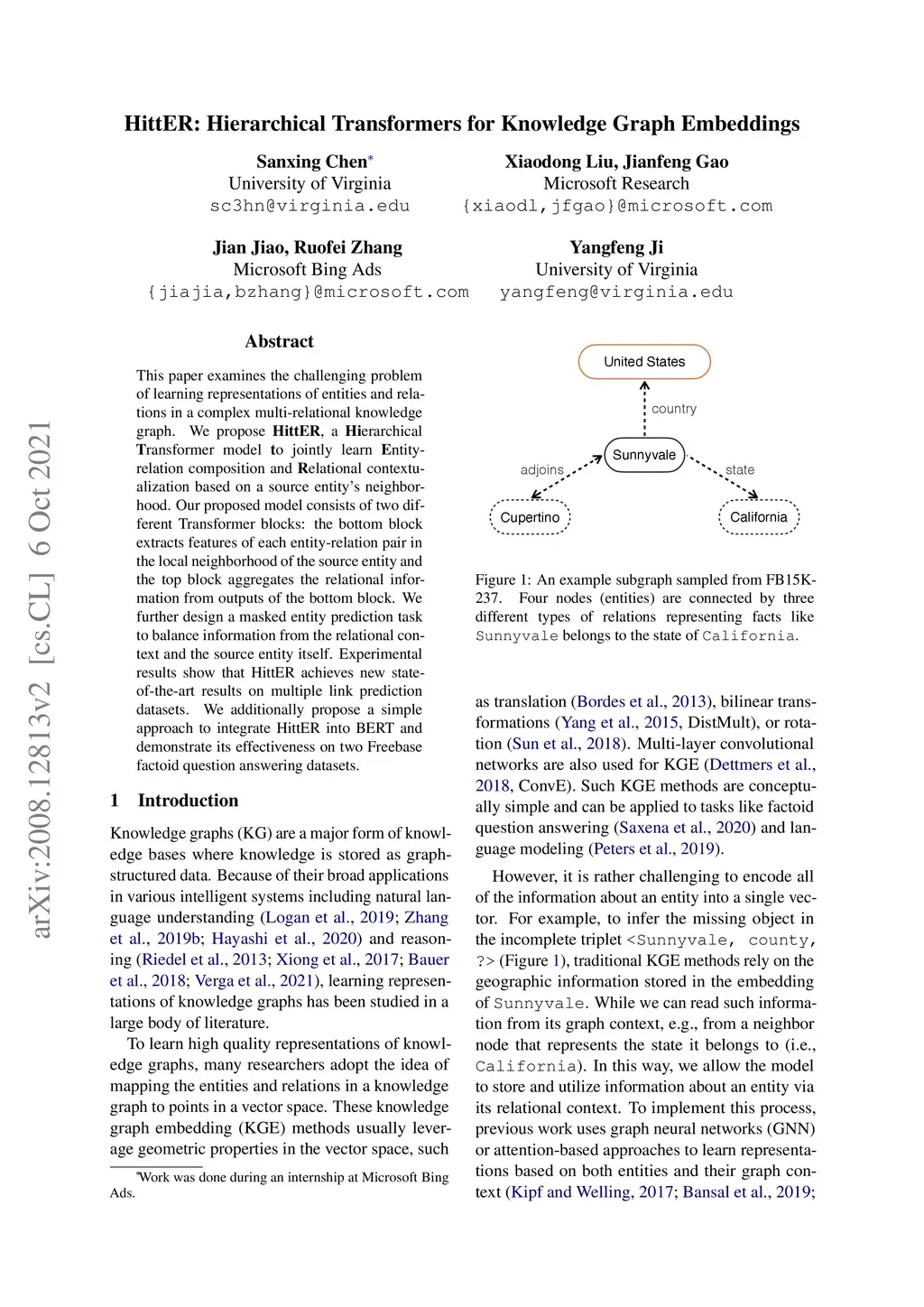 HittER: Hierarchical Transformers for Knowledge Graph Embeddings