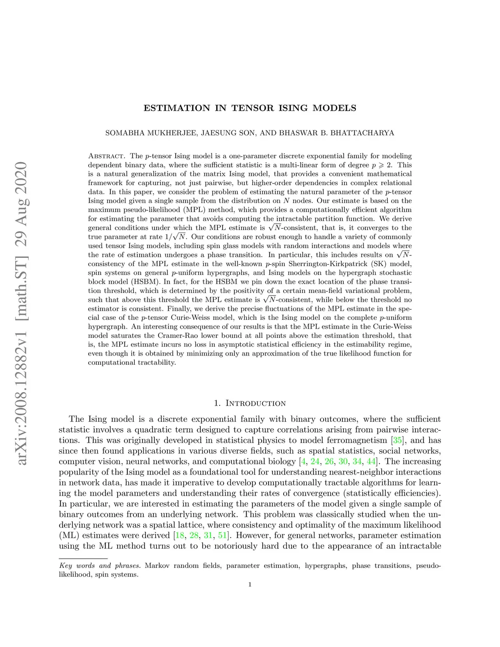 The -tensor Ising model is a one-parameter discrete exponential family for modeling dependent binary data, where the sufficient statistic is a multi-linear form of degree . This is a natural generalization of the matrix Ising model, that provides a convenient mathematical framework for capturing higher-order dependencies in complex relational data. In this paper, we consider the problem of estimating the natural parameter of the -tensor Ising model given a single sample from the distribution on nodes. Our estimate is based on the maximum pseudo-likelihood (MPL) method, which provides a computationally efficient algorithm for estimating the parameter that avoids computing the intractable partition function. We derive general conditions under which the MPL estimate is -consistent, that is, it converges to the true parameter at rate . In particular, we show the -consistency of the MPL estimate in the -spin Sherrington-Kirkpatrick (SK) model, spin systems on general -uniform hypergraphs, and Ising models on the hypergraph stochastic block model (HSBM). In fact, for the HSBM we pin down the exact location of the phase transition threshold, which is determined by the positivity of a certain mean-field variational problem, such that above this threshold the MPL estimate is -consistent, while below the threshold no estimator is consistent. Finally, we derive the precise fluctuations of the MPL estimate in the special case of the -tensor Curie-Weiss model. An interesting consequence of our results is that the MPL estimate in the Curie-Weiss model saturates the Cramer-Rao lower bound at all points above the estimation threshold, that is, the MPL estimate incurs no loss in asymptotic efficiency, even though it is obtained by minimizing only an approximation of the true likelihood function for computational tractability.