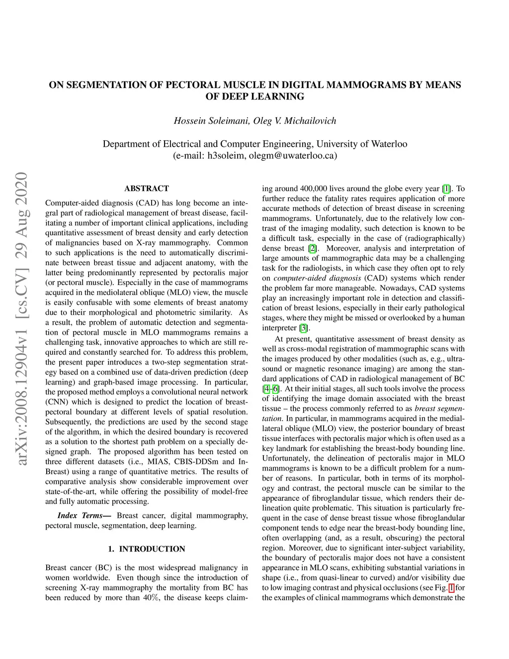 Computer-aided diagnosis (CAD) has long become an integral part of radiological management of breast disease, facilitating a number of important clinical applications, including quantitative assessment of breast density and early detection of malignancies based on X-ray mammography. Common to such applications is the need to automatically discriminate between breast tissue and adjacent anatomy, with the latter being predominantly represented by pectoralis major (or pectoral muscle). Especially in the case of mammograms acquired in the mediolateral oblique (MLO) view, the muscle is easily confusable with some elements of breast anatomy due to their morphological and photometric similarity. As a result, the problem of automatic detection and segmentation of pectoral muscle in MLO mammograms remains a challenging task, innovative approaches to which are still required and constantly searched for. To address this problem, the present paper introduces a two-step segmentation strategy based on a combined use of data-driven prediction (deep learning) and graph-based image processing. In particular, the proposed method employs a convolutional neural network (CNN) which is designed to predict the location of breast-pectoral boundary at different levels of spatial resolution. Subsequently, the predictions are used by the second stage of the algorithm, in which the desired boundary is recovered as a solution to the shortest path problem on a specially designed graph. The proposed algorithm has been tested on three different datasets (i.e., MIAS, CBIS-DDSm and InBreast) using a range of quantitative metrics. The results of comparative analysis show considerable improvement over state-of-the-art, while offering the possibility of model-free and fully automatic processing.