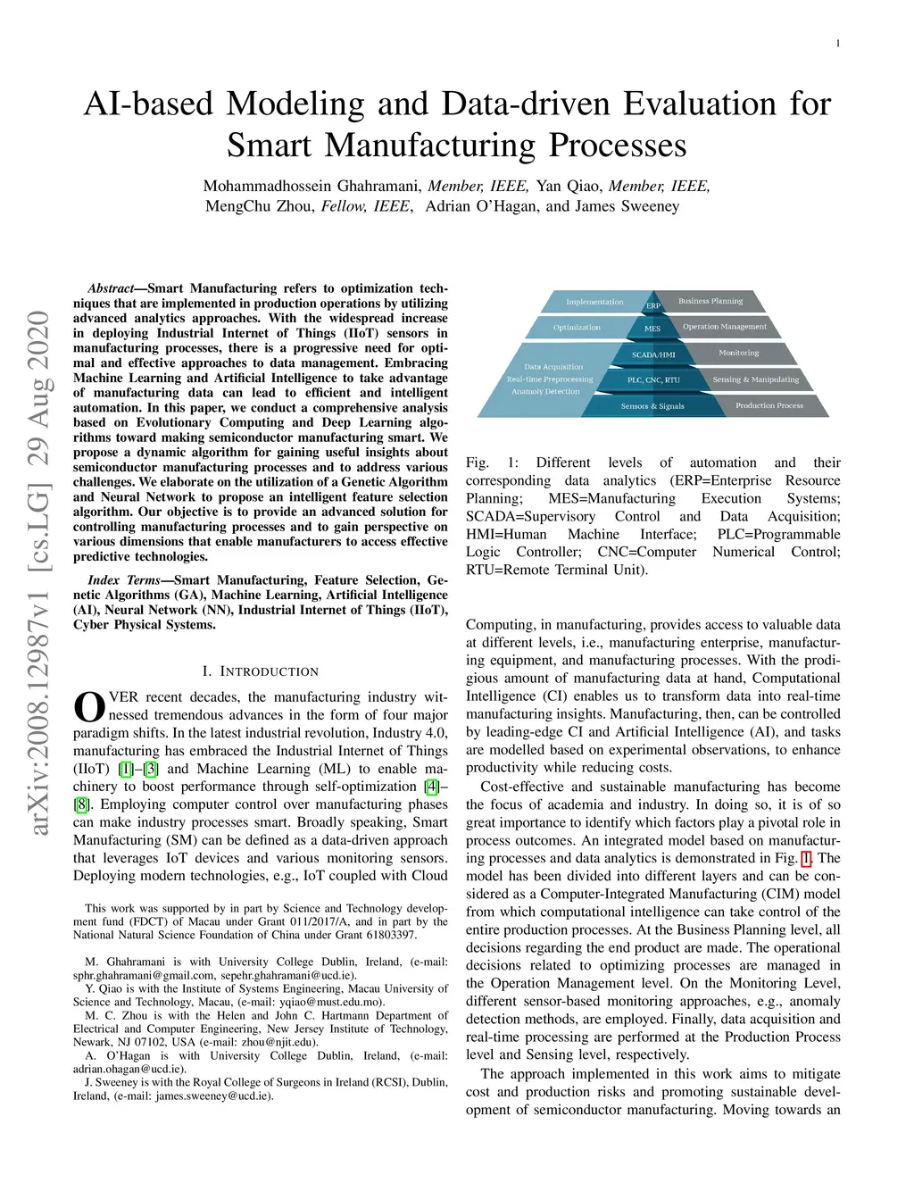 Smart Manufacturing refers to optimization techniques that are implemented in production operations by utilizing advanced analytics approaches. With the widespread increase in deploying Industrial Internet of Things (IIoT) sensors in manufacturing processes, there is a progressive need for optimal and effective approaches to data management. Embracing Machine Learning and Artificial Intelligence to take advantage of manufacturing data can lead to efficient and intelligent automation. In this paper, we conduct a comprehensive analysis based on Evolutionary Computing and Deep Learning algorithms toward making semiconductor manufacturing smart. We propose a dynamic algorithm for gaining useful insights about semiconductor manufacturing processes and to address various challenges. We elaborate on the utilization of a Genetic Algorithm and Neural Network to propose an intelligent feature selection algorithm. Our objective is to provide an advanced solution for controlling manufacturing processes and to gain perspective on various dimensions that enable manufacturers to access effective predictive technologies.