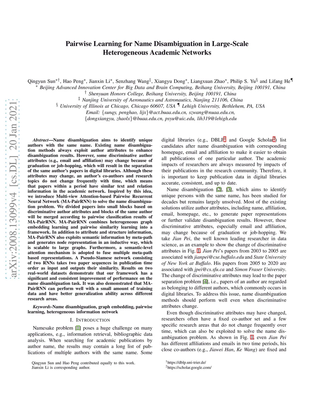 Pairwise Learning for Name Disambiguation in Large-Scale Heterogeneous