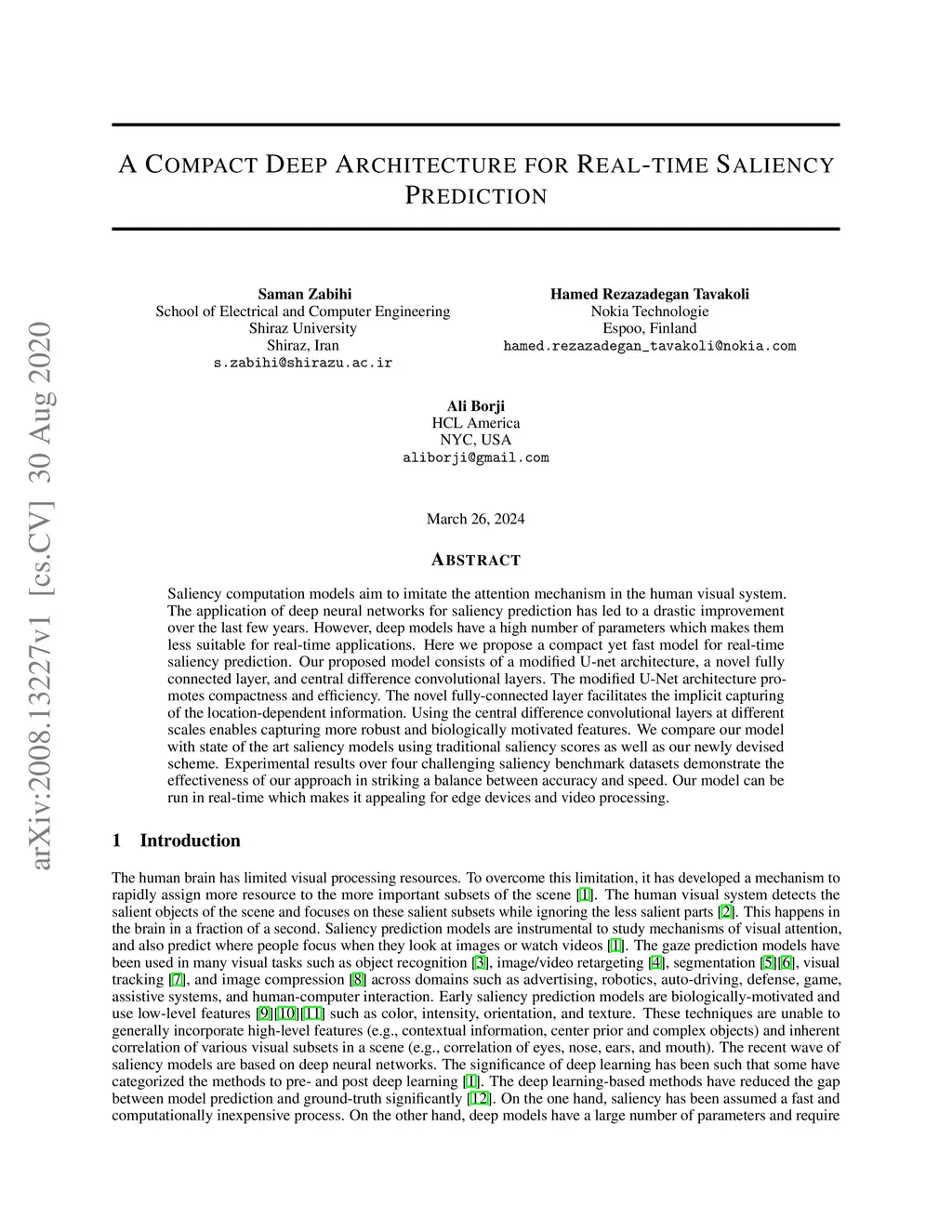 A Compact Deep Architecture for Real-time Saliency Prediction