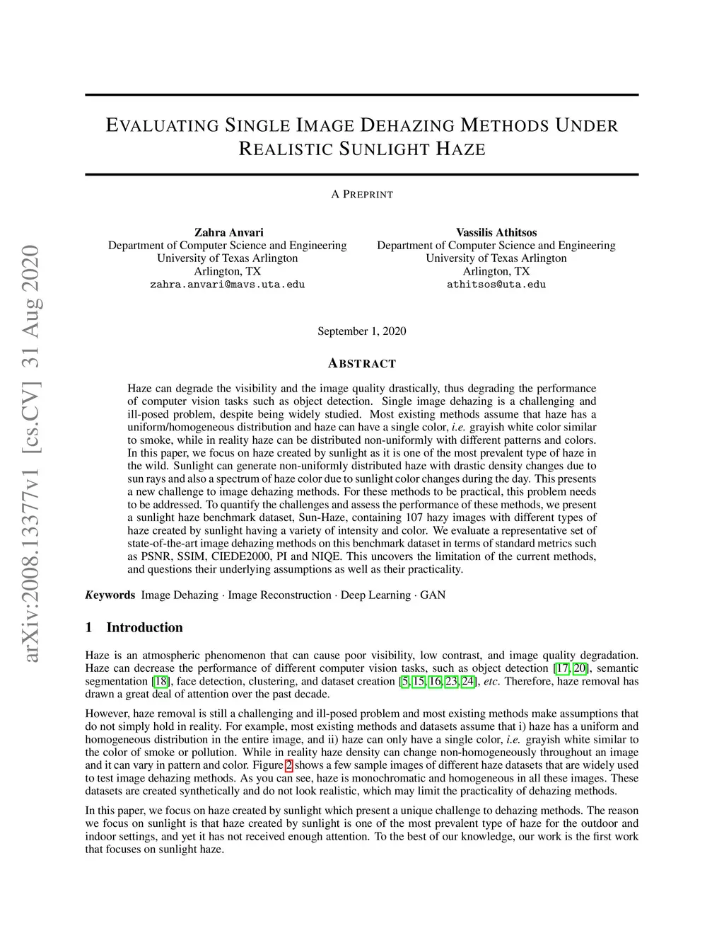Evaluating Single Image Dehazing Methods Under Realistic Sunlight Haze