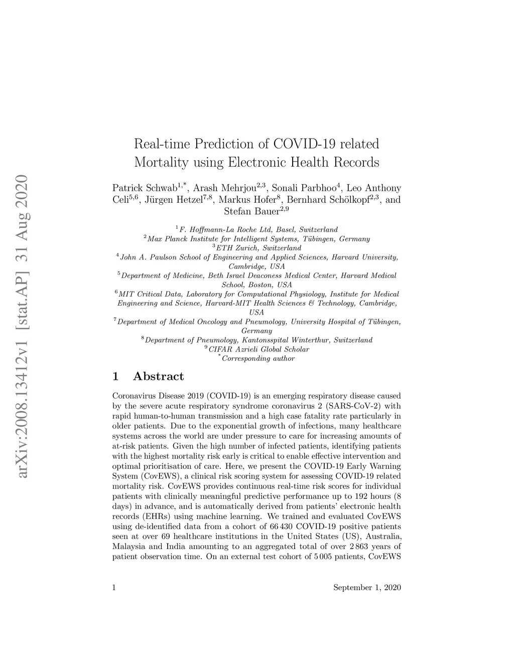 Real-time Prediction of COVID-19 related Mortality using Electronic