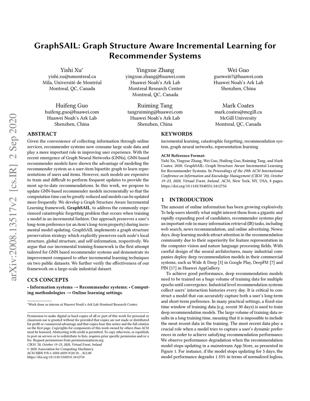 GraphSAIL: Graph Structure Aware Incremental Learning for Recommender