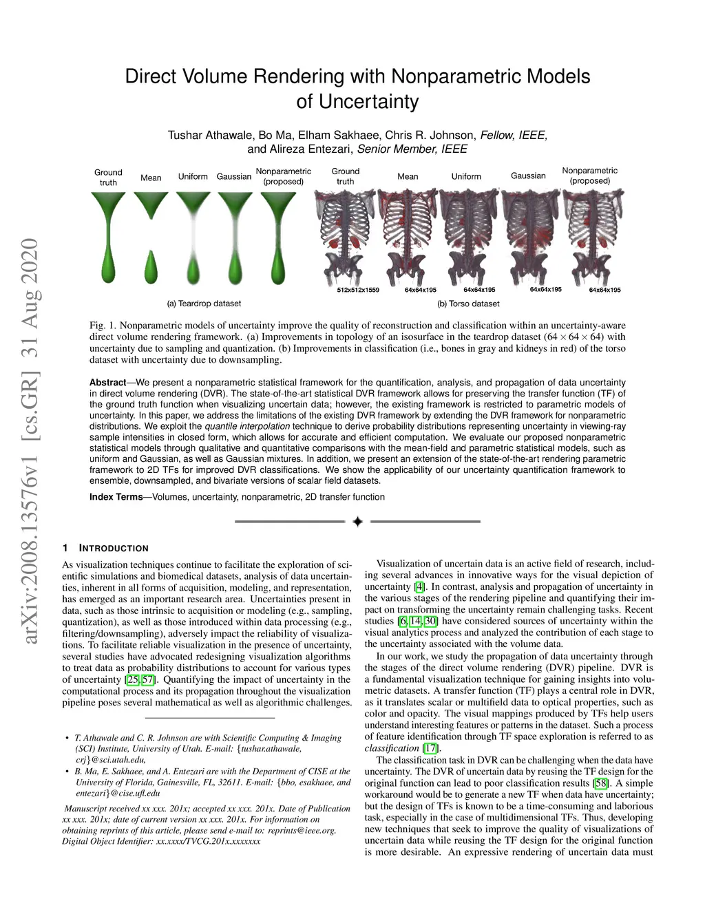 Direct Volume Rendering with Nonparametric Models of Uncertainty