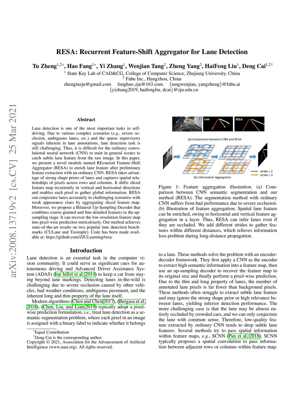 RESA: Recurrent Feature-Shift Aggregator for Lane Detection
