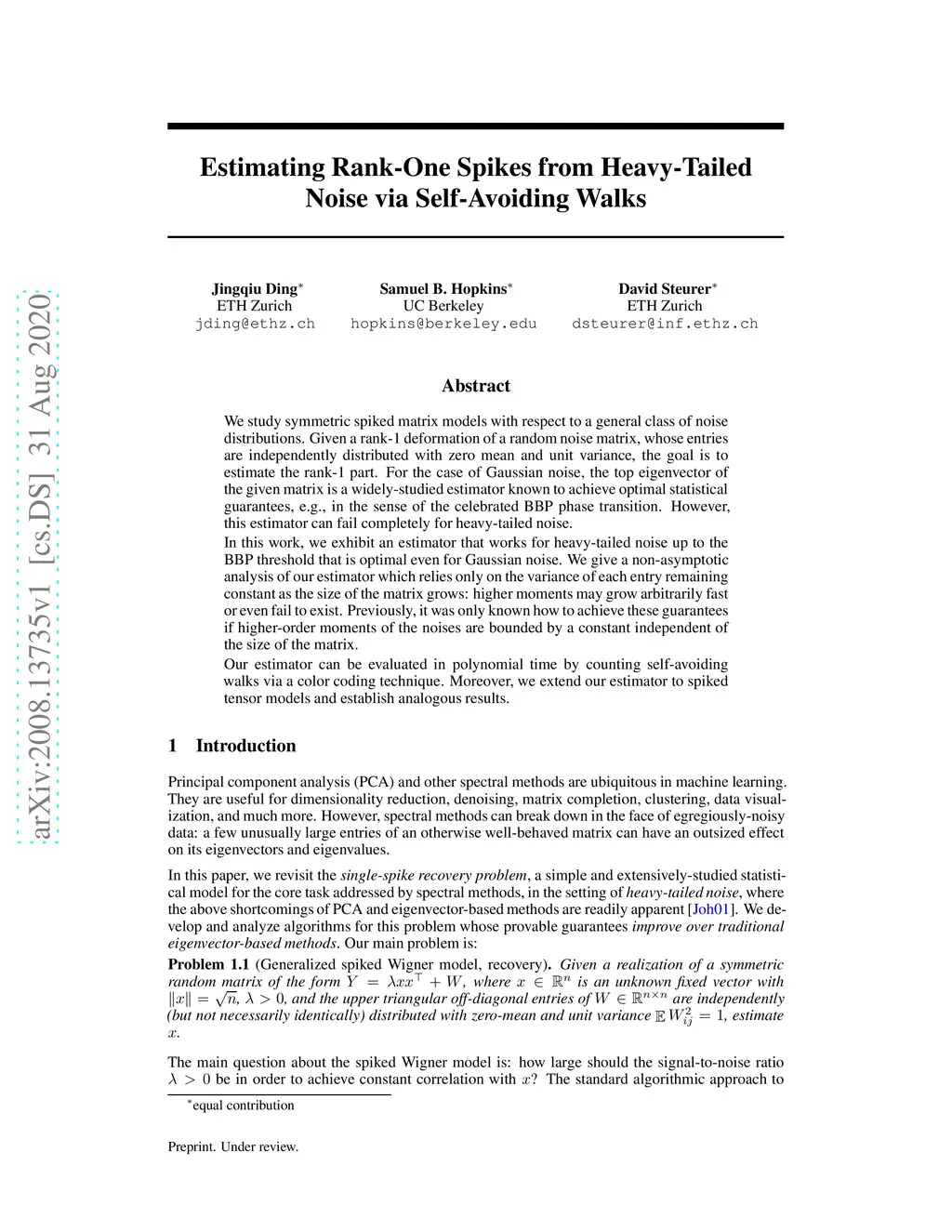 Estimating Rank-One Spikes from Heavy-Tailed Noise via Self-Avoiding