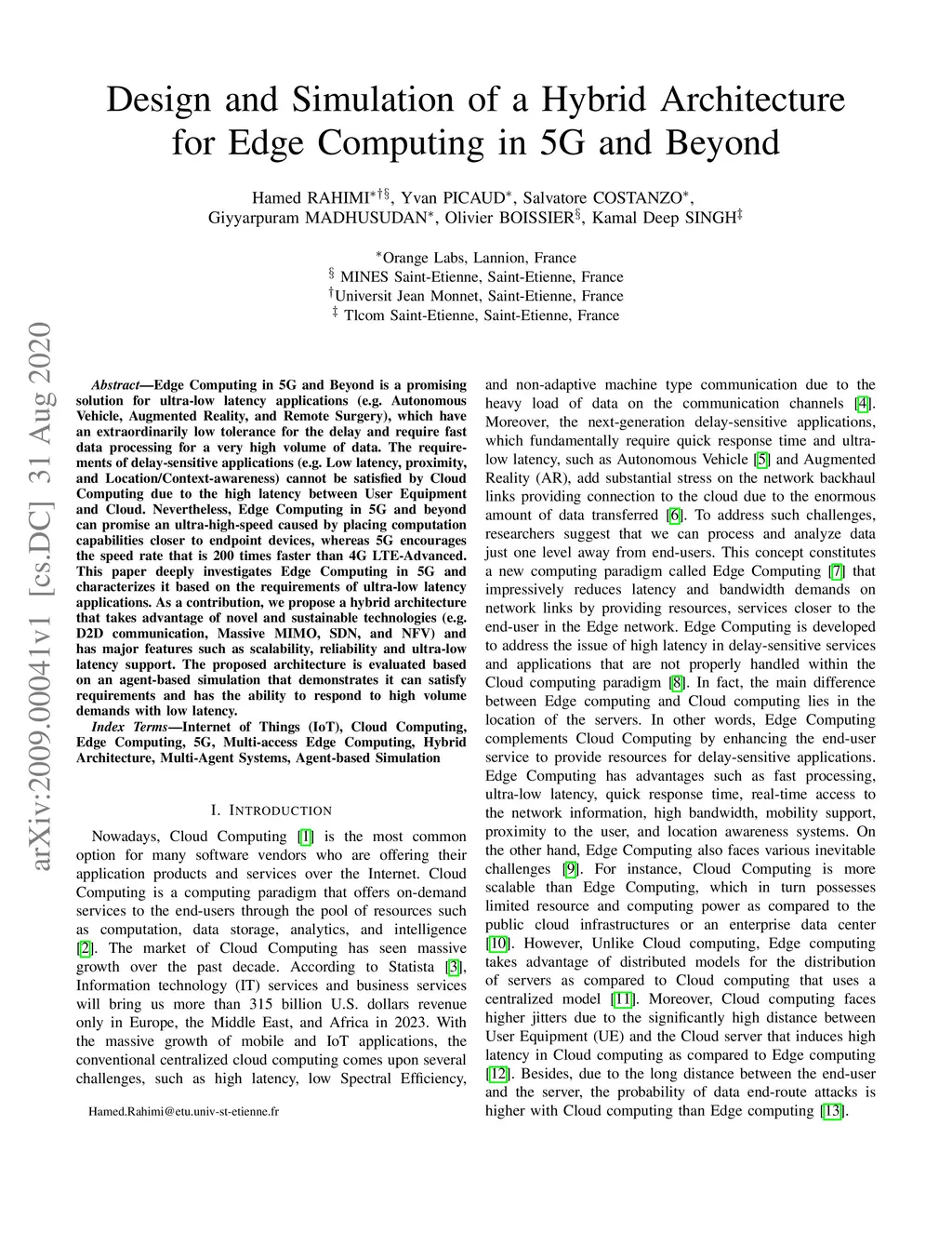 Design and Simulation of a Hybrid Architecture for Edge Computing in 5G