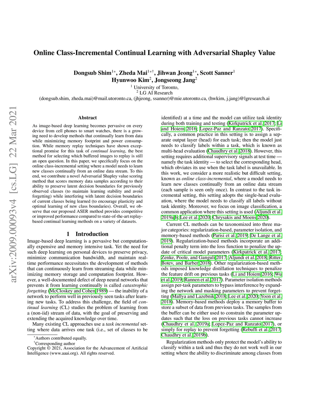 Online Class-Incremental Continual Learning with Adversarial Shapley