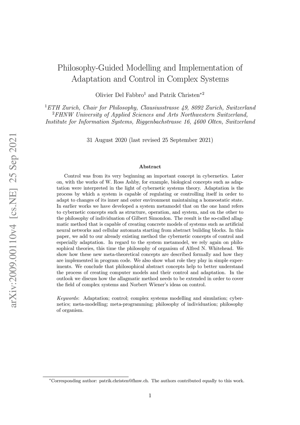Philosophy-Guided Modelling and Implementation of Adaptation and Control