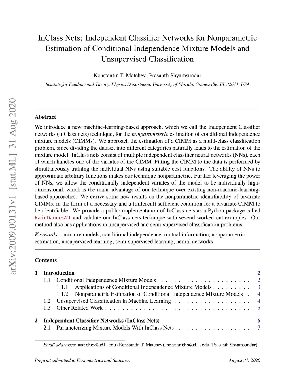 InClass Nets: Independent Classifier Networks for Nonparametric
