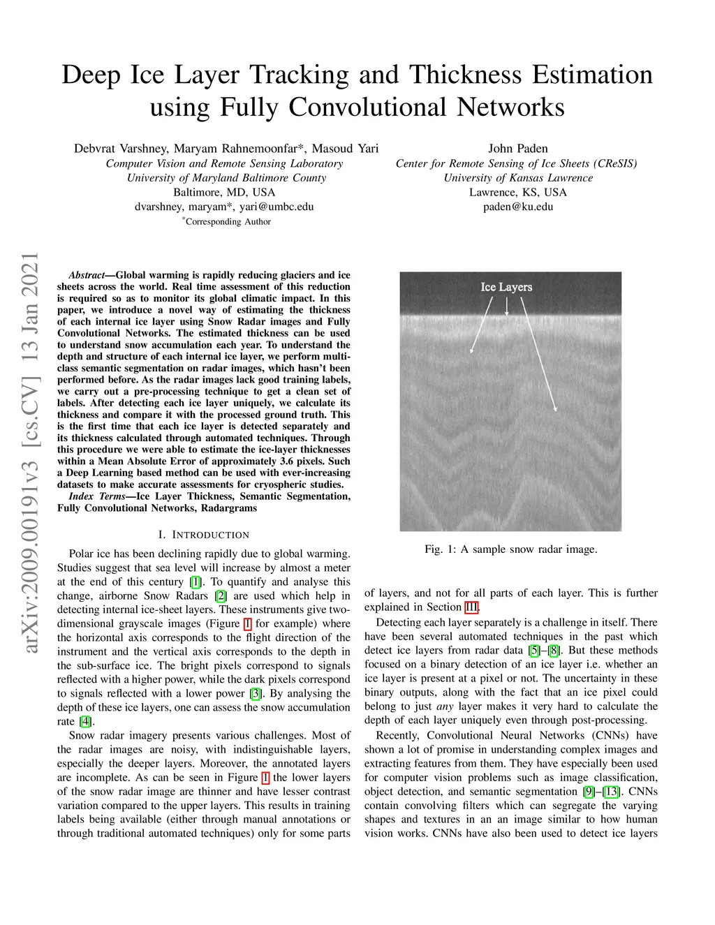 Deep Ice Layer Tracking and Thickness Estimation using Fully