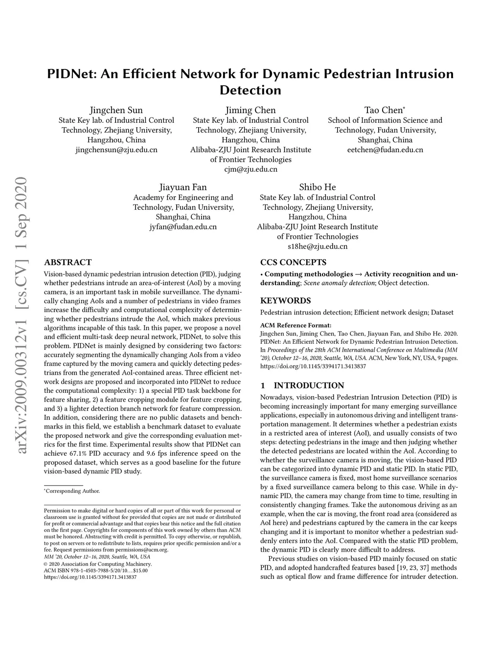 PIDNet: An Efficient Network for Dynamic Pedestrian Intrusion Detection