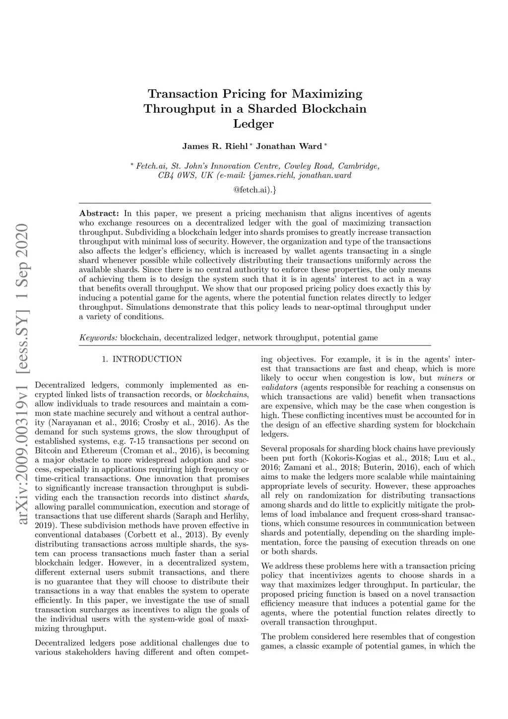 In this paper, we present a pricing mechanism that aligns incentives of agents who exchange resources on a decentralized ledger with the goal of maximizing transaction throughput. Subdividing a blockchain ledger into shards promises to greatly increase transaction throughput with minimal loss of security. However, the organization and type of the transactions also affects the ledger's efficiency, which is increased by wallet agents transacting in a single shard whenever possible while collectively distributing their transactions uniformly across the available shards. Since there is no central authority to enforce these properties, the only means of achieving them is to design the system such that it is in agents' interest to act in a way that benefits overall throughput. We show that our proposed pricing policy does exactly this by inducing a potential game for the agents, where the potential function relates directly to ledger throughput. Simulations demonstrate that this policy leads to near-optimal throughput under a variety of conditions.