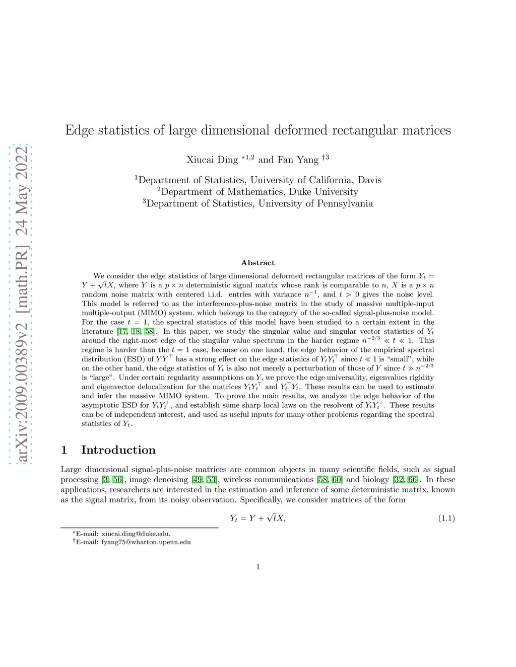 We consider the edge statistics of large dimensional deformed rectangular matrices of the form where is a deterministic signal matrix whose rank is comparable to , is a random noise matrix with centered i.i.d. entries with variance , and gives the noise level. This model is referred to as the interference-plus-noise matrix in the study of massive multiple-input multiple-output (MIMO) system, which belongs to the category of the so-called signal-plus-noise model. For the case , the spectral statistics of this model have been studied to a certain extent in the literature. In this paper, we study the singular value and singular vector statistics of around the right-most edge of the singular value spectrum in the harder regime . This regime is harder than the case, because on one hand, the edge behavior of the empirical spectral distribution (ESD) of has a strong effect on the edge statistics of since is "small", while on the other hand, the edge statistics of is also not merely a perturbation of those of since is "large". Under certain regularity assumptions on we prove the edge universality, eigenvalues rigidity and eigenvector delocalization for the matrices and . These results can be used to estimate and infer the massive MIMO system. To prove the main results, we analyze the edge behavior of the asymptotic ESD for , and establish some sharp local laws on the resolvent of . These results can be of independent interest, and used as useful inputs for many other problems regarding the spectral statistics of .