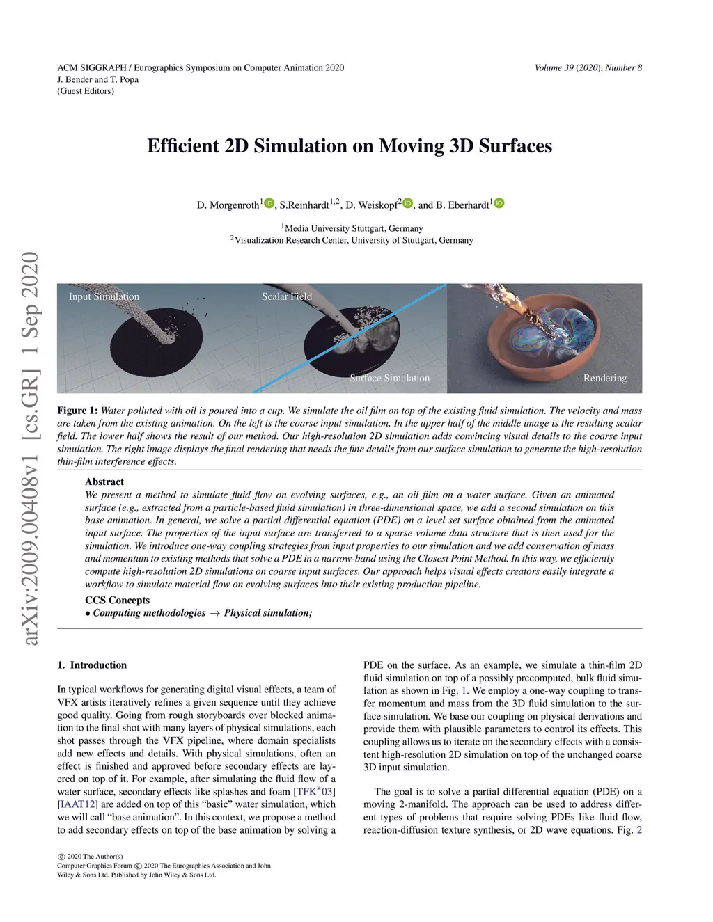 Efficient 2D Simulation on Moving 3D Surfaces