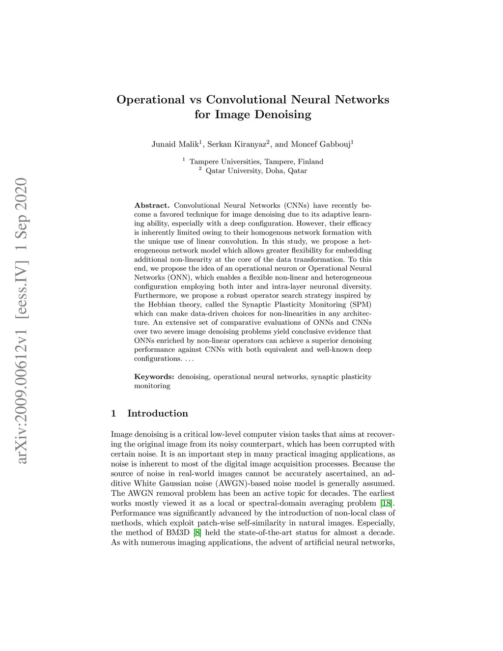 Convolutional Neural Networks (CNNs) have recently become a favored technique for image denoising due to its adaptive learning ability, especially with a deep configuration. However, their efficacy is inherently limited owing to their homogenous network formation with the unique use of linear convolution. In this study, we propose a heterogeneous network model which allows greater flexibility for embedding additional non-linearity at the core of the data transformation. To this end, we propose the idea of an operational neuron or Operational Neural Networks (ONN), which enables a flexible non-linear and heterogeneous configuration employing both inter and intra-layer neuronal diversity. Furthermore, we propose a robust operator search strategy inspired by the Hebbian theory, called the Synaptic Plasticity Monitoring (SPM) which can make data-driven choices for non-linearities in any architecture. An extensive set of comparative evaluations of ONNs and CNNs over two severe image denoising problems yield conclusive evidence that ONNs enriched by non-linear operators can achieve a superior denoising performance against CNNs with both equivalent and well-known deep configurations.