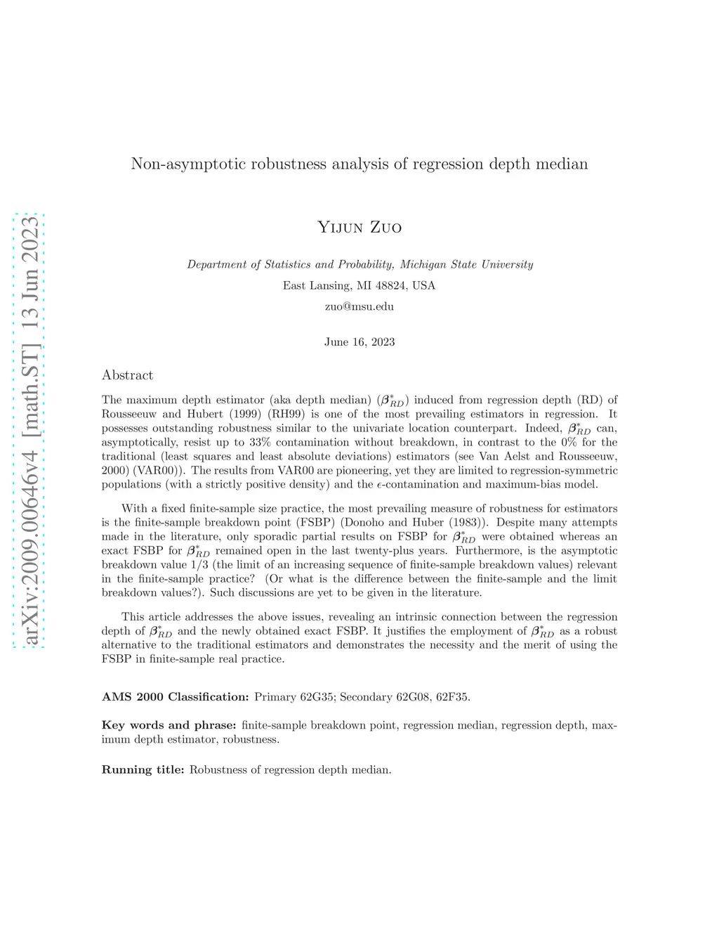 The maximum depth estimator (aka depth median) () induced from regression depth (RD) of Rousseeuw and Hubert (1999) (RH99) is one of the most prevailing estimators in regression. It possesses outstanding robustness similar to the univariate location counterpart. Indeed, can, asymptotically, resist up to contamination without breakdown, in contrast to the for the traditional (least squares and least absolute deviations) estimators (see Van Aelst and Rousseeuw, 2000) (VAR00)). The results from VAR00 are pioneering, yet they are limited to regression-symmetric populations (with a strictly positive density) and the -contamination and maximum-bias model. With a fixed finite-sample size practice, the most prevailing measure of robustness for estimators is the finite-sample breakdown point (FSBP) (Donoho and Huber (1983)). Despite many attempts made in the literature, only sporadic partial results on FSBP for were obtained whereas an exact FSBP for remained open in the last twenty-plus years. Furthermore, is the asymptotic breakdown value (the limit of an increasing sequence of finite-sample breakdown values) relevant in the finite-sample practice? (Or what is the difference between the finite-sample and the limit breakdown values?). Such discussions are yet to be given in the literature. This article addresses the above issues, revealing an intrinsic connection between the regression depth of and the newly obtained exact FSBP. It justifies the employment of as a robust alternative to the traditional estimators and demonstrates the necessity and the merit of using the FSBP in finite-sample real practice.