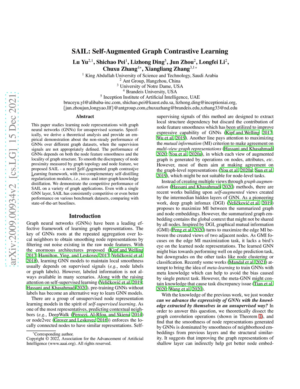 SAIL: Self-Augmented Graph Contrastive Learning