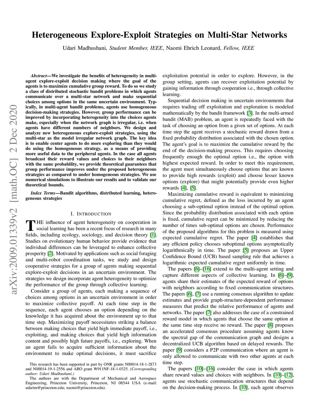 We investigate the benefits of heterogeneity in multi-agent explore-exploit decision making where the goal of the agents is to maximize cumulative group reward. To do so we study a class of distributed stochastic bandit problems in which agents communicate over a multi-star network and make sequential choices among options in the same uncertain environment. Typically, in multi-agent bandit problems, agents use homogeneous decision-making strategies. However, group performance can be improved by incorporating heterogeneity into the choices agents make, especially when the network graph is irregular, i.e. when agents have different numbers of neighbors. We design and analyze new heterogeneous explore-exploit strategies, using the multi-star as the model irregular network graph. The key idea is to enable center agents to do more exploring than they would do using the homogeneous strategy, as a means of providing more useful data to the peripheral agents. In the case all agents broadcast their reward values and choices to their neighbors with the same probability, we provide theoretical guarantees that group performance improves under the proposed heterogeneous strategies as compared to under homogeneous strategies. We use numerical simulations to illustrate our results and to validate our theoretical bounds.