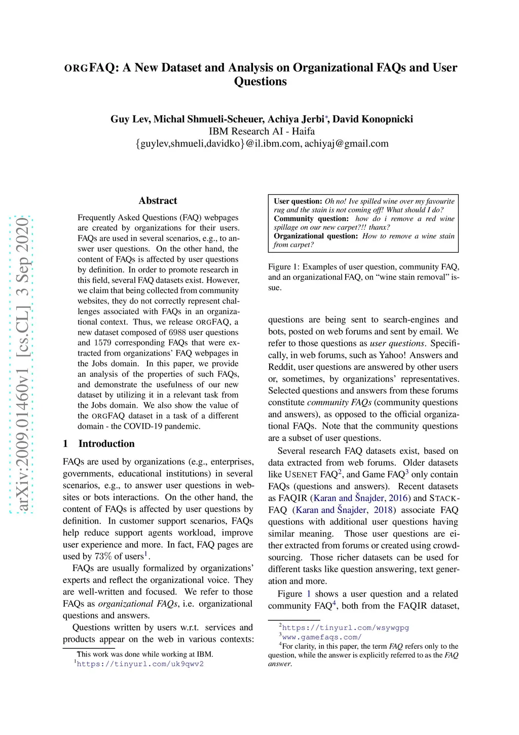 orgFAQ: A New Dataset and Analysis on Organizational FAQs and User