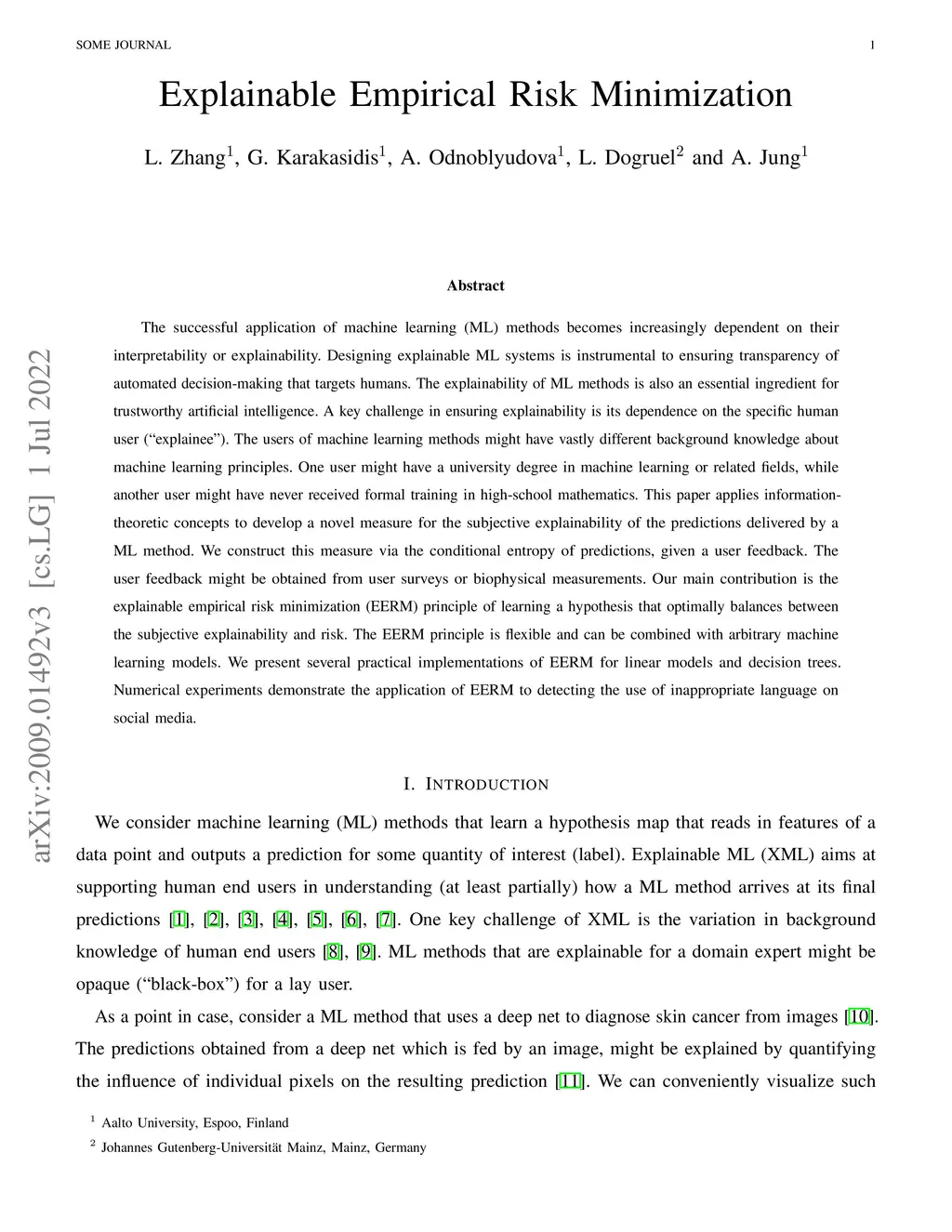 Explainable Empirical Risk Minimization