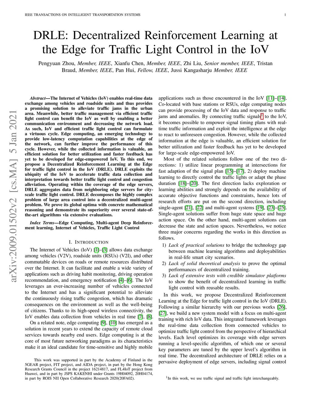 DRLE: Decentralized Reinforcement Learning at the Edge for Traffic Light