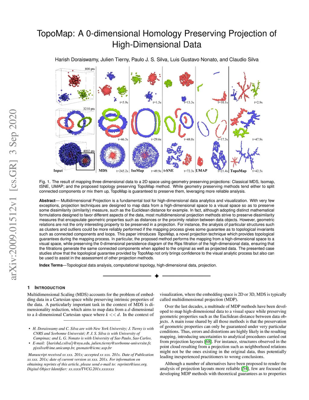 TopoMap: A 0-dimensional Homology Preserving Projection of