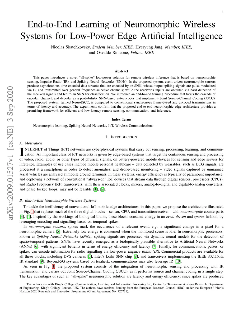 End-to-End Learning of Neuromorphic Wireless Systems for Low-Power Edge