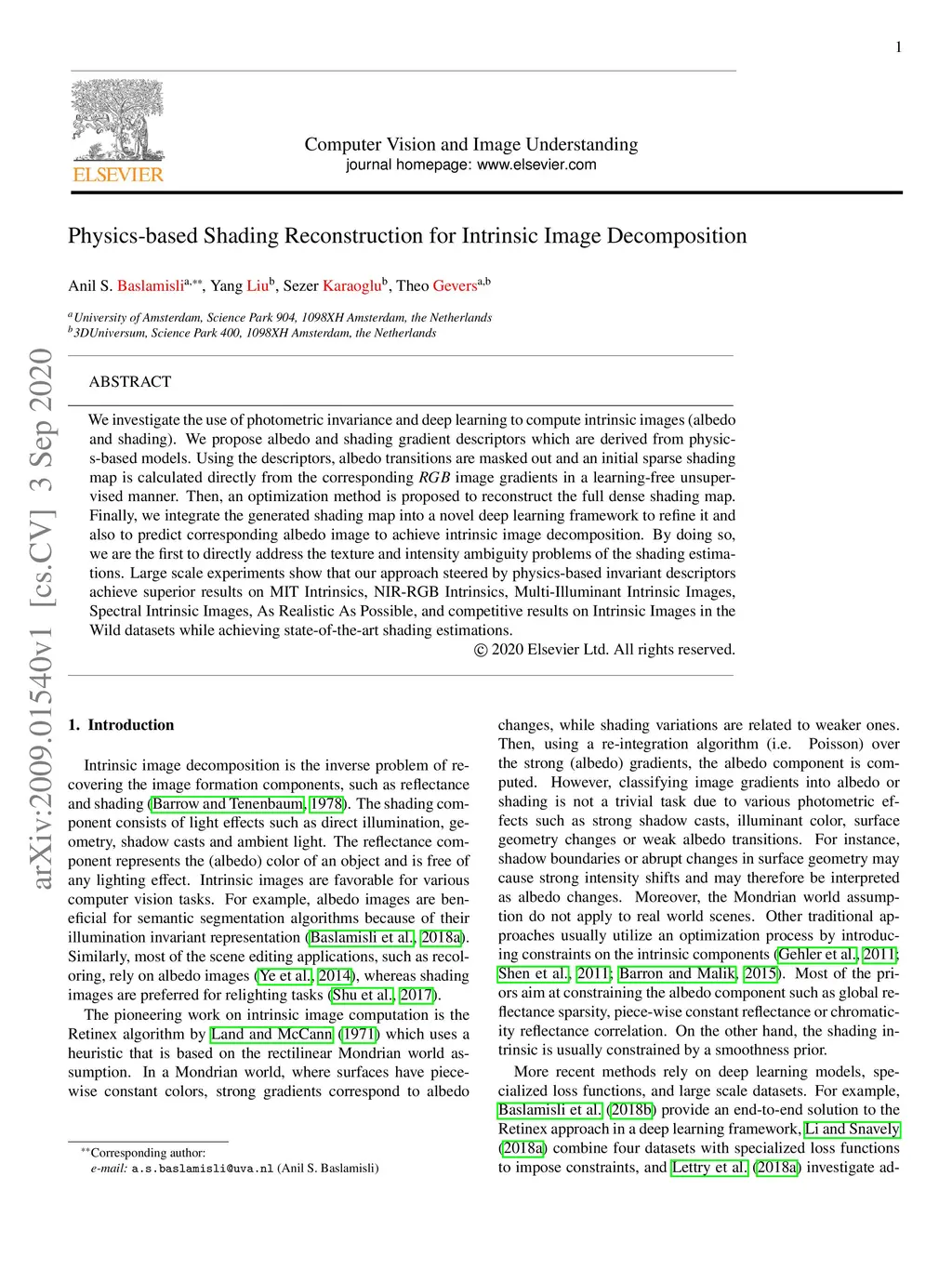 Physics-based Shading Reconstruction for Intrinsic Image Decomposition