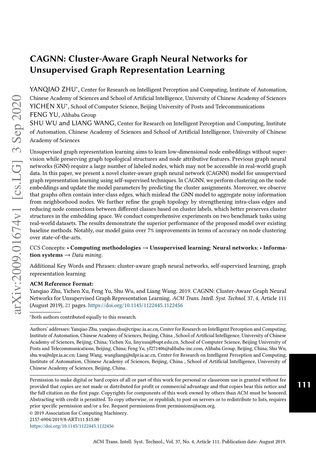 CAGNN: Cluster-Aware Graph Neural Networks for Unsupervised Graph