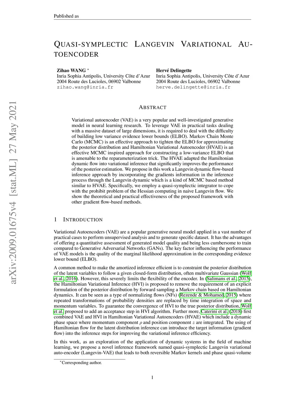 Quasi-symplectic Langevin Variational Autoencoder