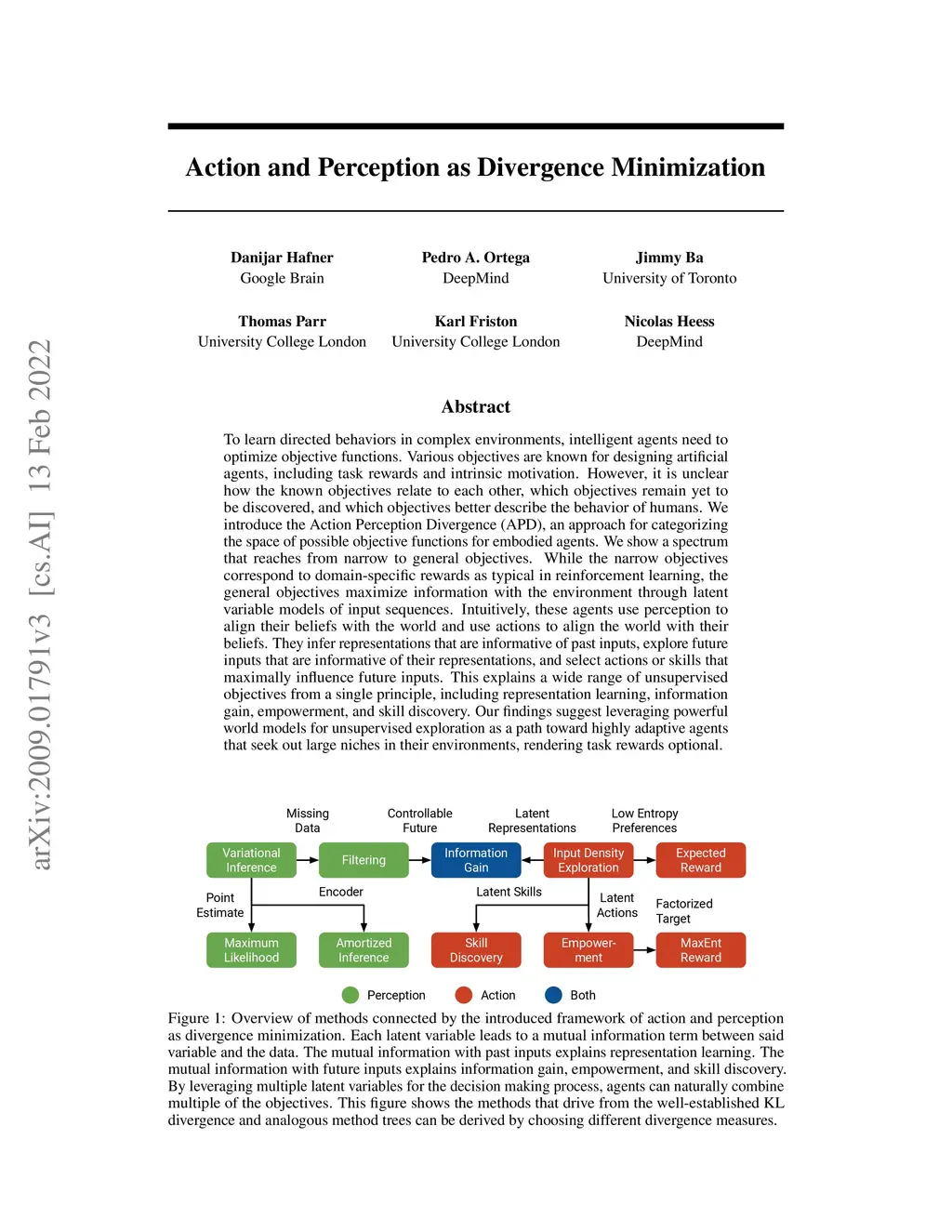 Action and Perception as Divergence Minimization