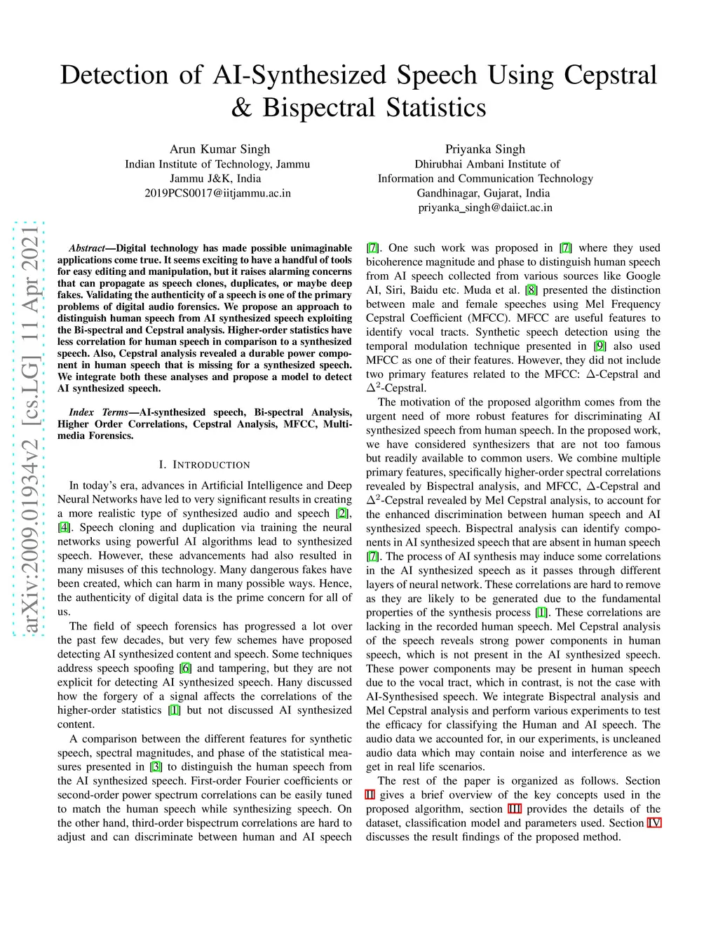 Detection of AI-Synthesized Speech Using Cepstral & Bispectral