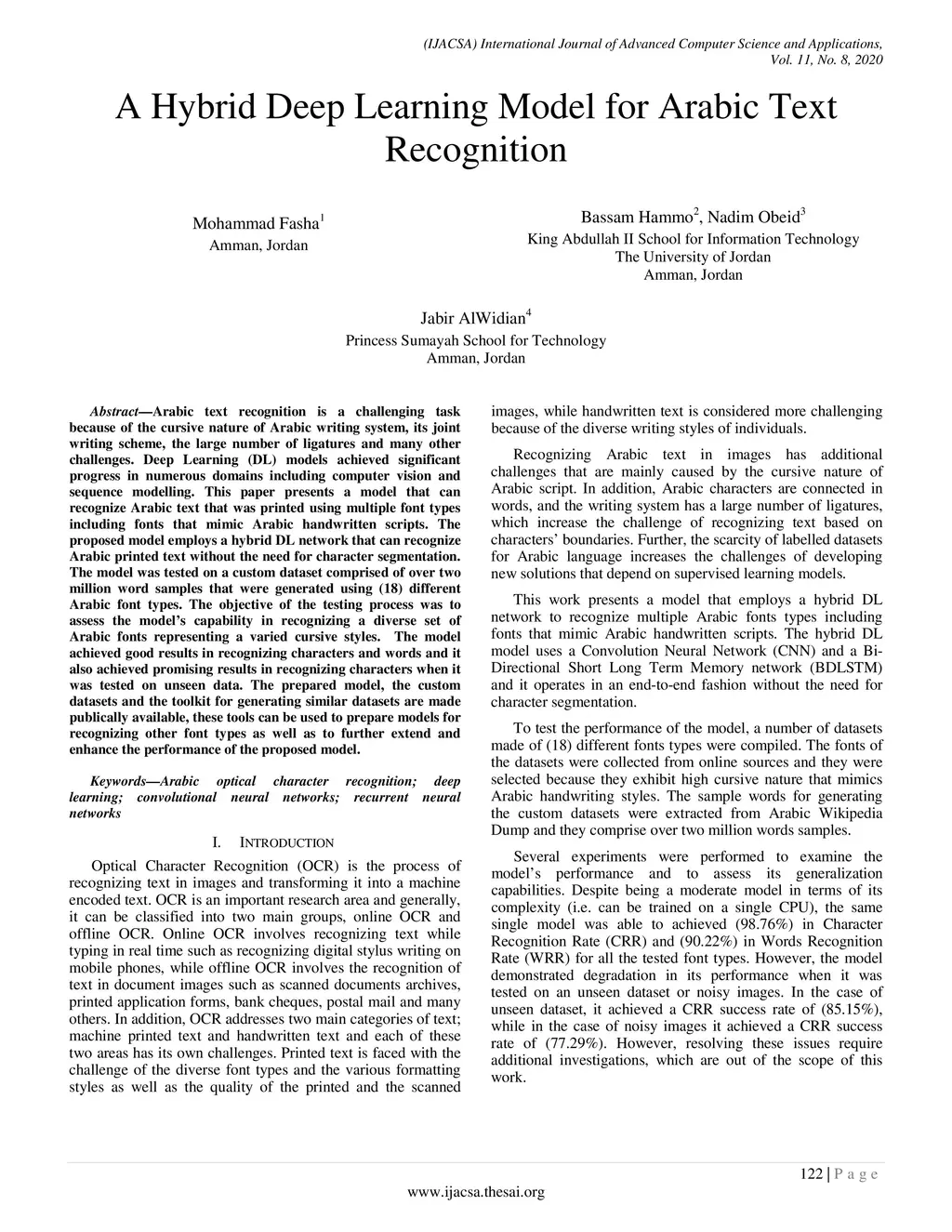 A Hybrid Deep Learning Model for Arabic Text Recognition