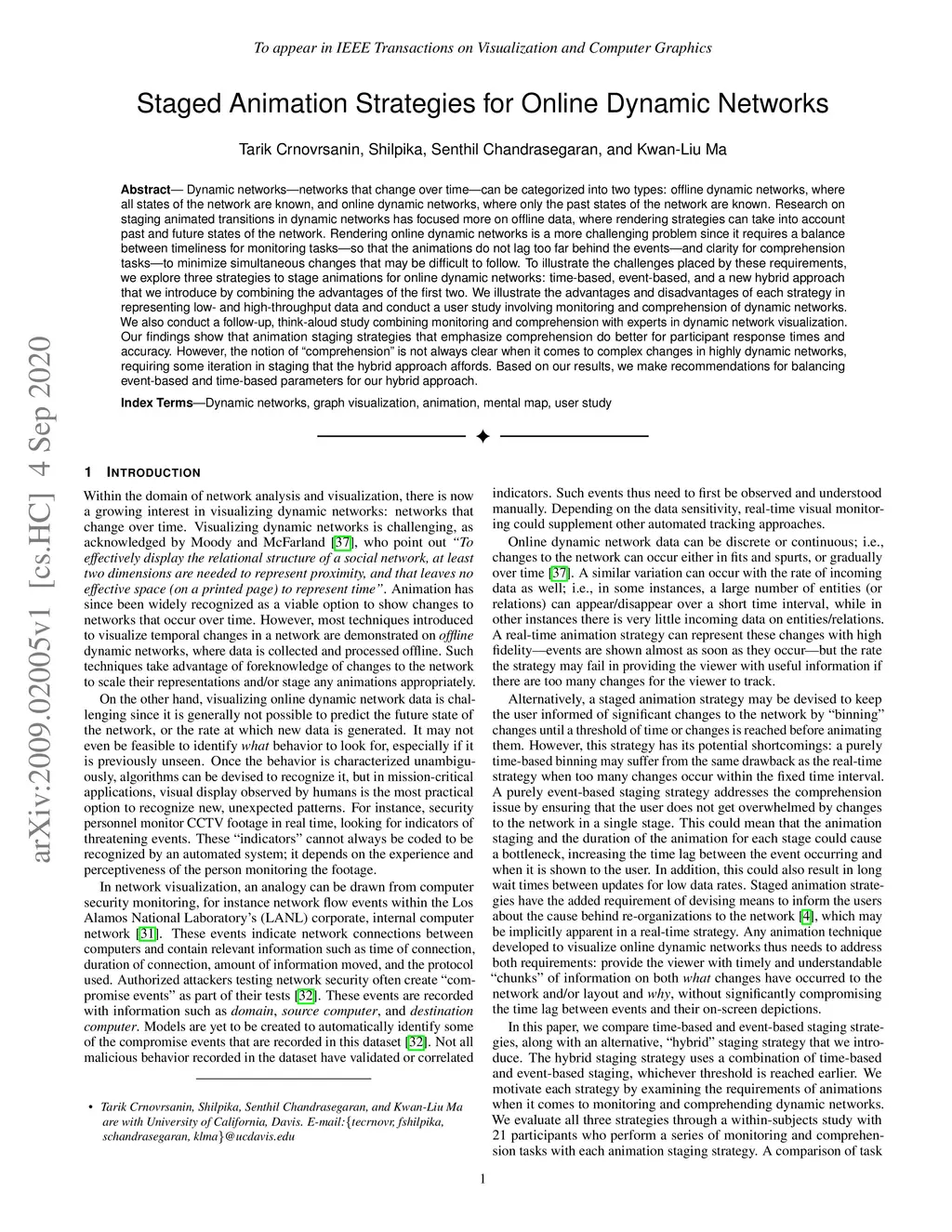 Staged Animation Strategies for Online Dynamic Networks