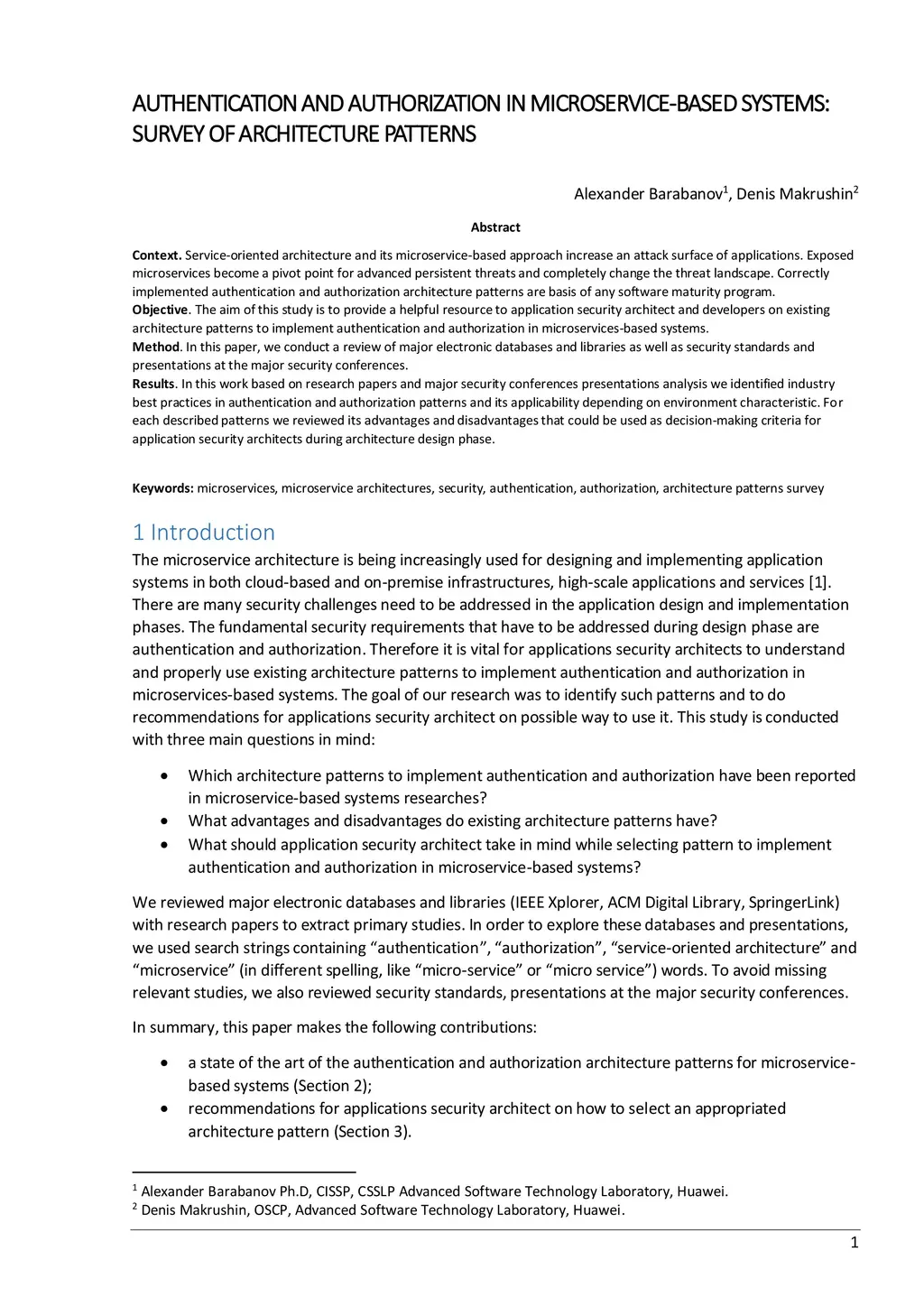 Authentication and authorization in microservice-based systems: survey