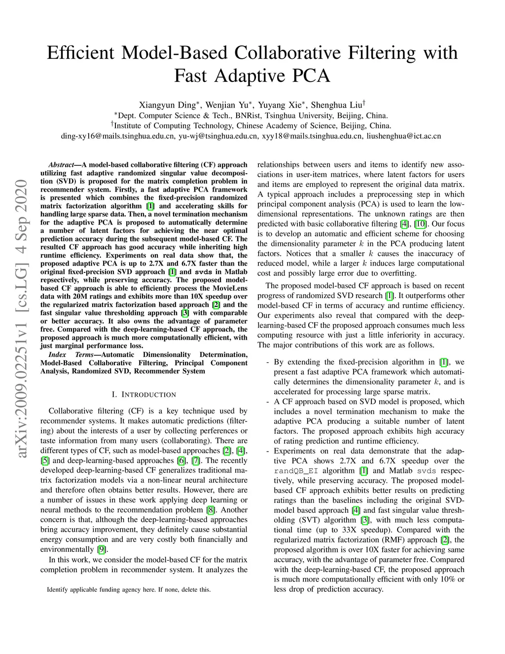 Efficient Model-Based Collaborative Filtering with Fast Adaptive PCA