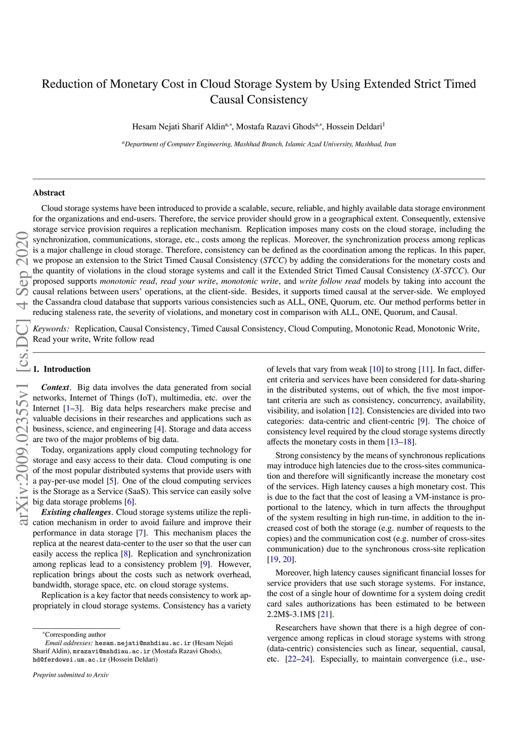 Cloud storage systems have been introduced to provide a scalable, secure, reliable, and highly available data storage environment for the organizations and end-users. Therefore, the service provider should grow in a geographical extent. Consequently, extensive storage service provision requires a replication mechanism. Replication imposes many costs on the cloud storage, including the synchronization, communications, storage, etc., costs among the replicas. Moreover, the synchronization process among replicas is a major challenge in cloud storage. Therefore, consistency can be defined as the coordination among the replicas. In this paper, we propose an extension to the strict timed causal consistency by adding the considerations for the monetary costs and the number of violations in the cloud storage systems and call it the extended strict timed causal consistency. Our proposed supports monotonic read, read your write, monotonic write, and write follow read, models by taking into account the causal relations between users' operations, at the client-side. Besides, it supports timed causal at the server-side. We employed the Cassandra cloud database that supports various consistencies such as all, one, quorum, etc. Our method performs better in reducing staleness rate, the severity of violations, and monetary cost in comparison with all, one, quorum, and causal.