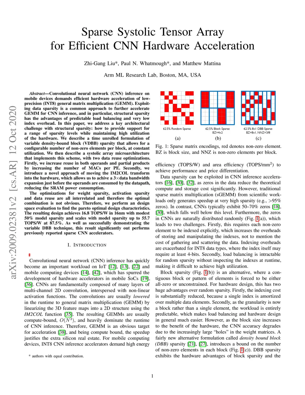 Sparse Systolic Tensor Array for Efficient CNN Hardware Acceleration
