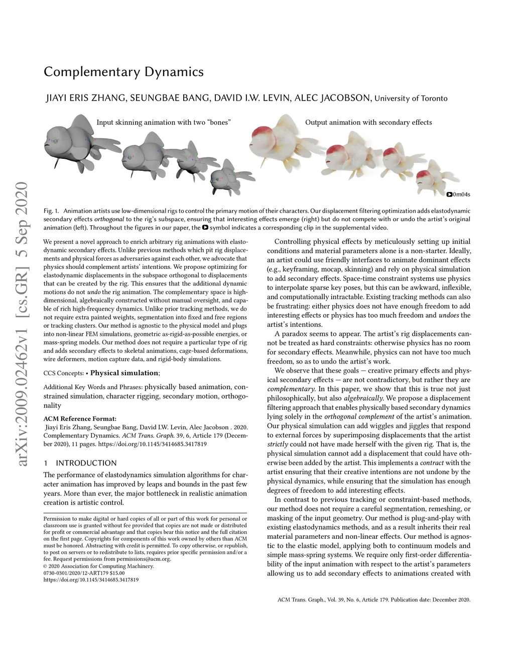 We present a novel approach to enrich arbitrary rig animations with elastodynamic secondary effects. Unlike previous methods which pit rig displacements and physical forces as adversaries against each other, we advocate that physics should complement artists intentions. We propose optimizing for elastodynamic displacements in the subspace orthogonal to displacements that can be created by the rig. This ensures that the additional dynamic motions do not undo the rig animation. The complementary space is high dimensional, algebraically constructed without manual oversight, and capable of rich high-frequency dynamics. Unlike prior tracking methods, we do not require extra painted weights, segmentation into fixed and free regions or tracking clusters. Our method is agnostic to the physical model and plugs into non-linear FEM simulations, geometric as-rigid-as-possible energies, or mass-spring models. Our method does not require a particular type of rig and adds secondary effects to skeletal animations, cage-based deformations, wire deformers, motion capture data, and rigid-body simulations.