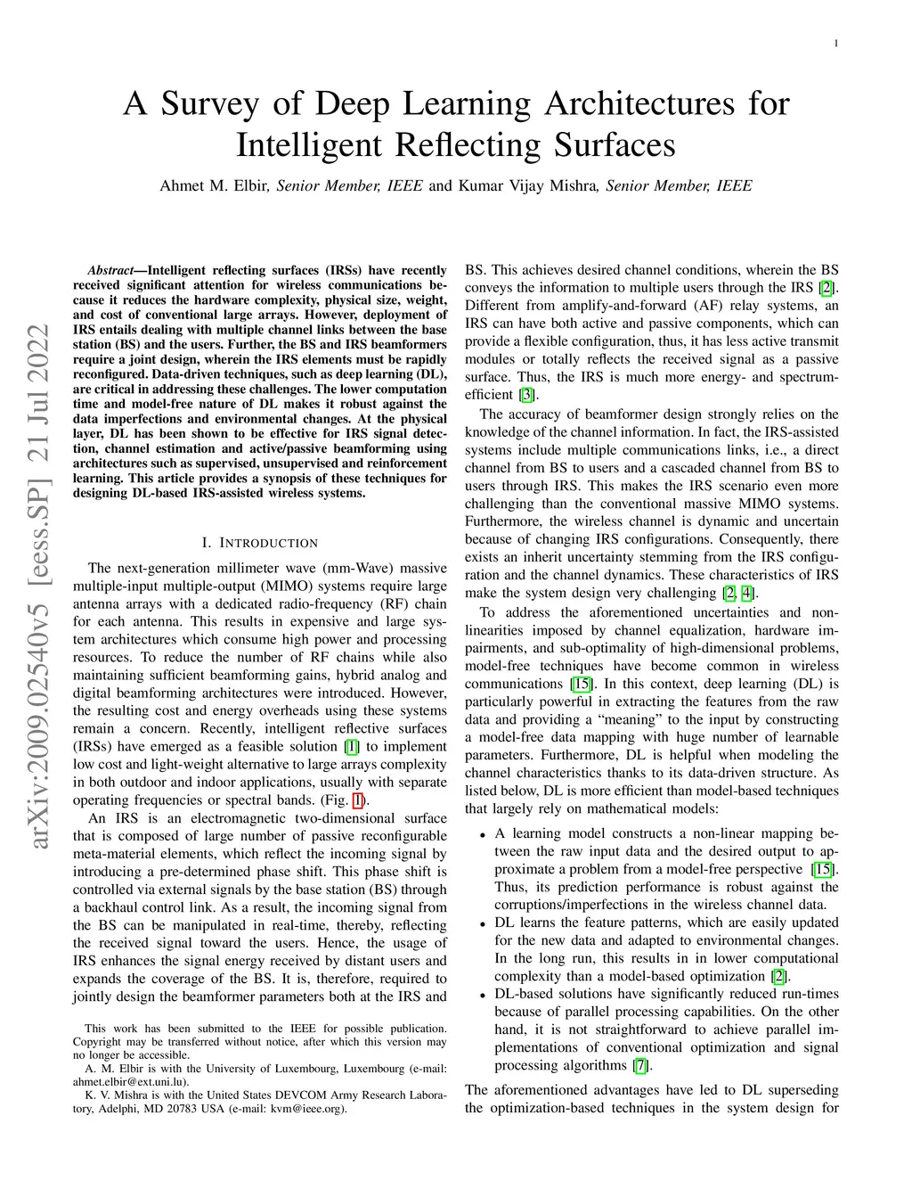 A Survey of Deep Learning Architectures for Intelligent Reflecting