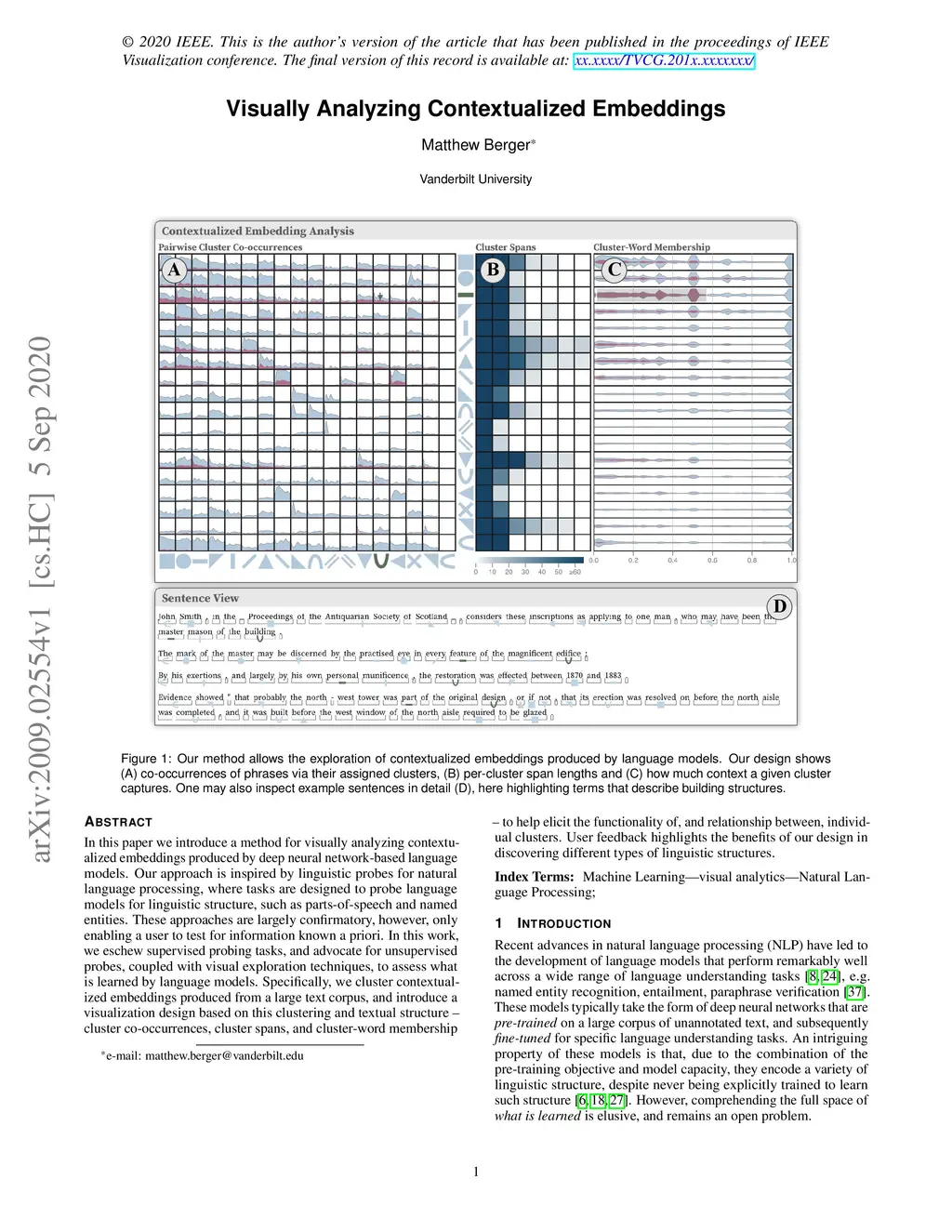 Visually Analyzing Contextualized Embeddings