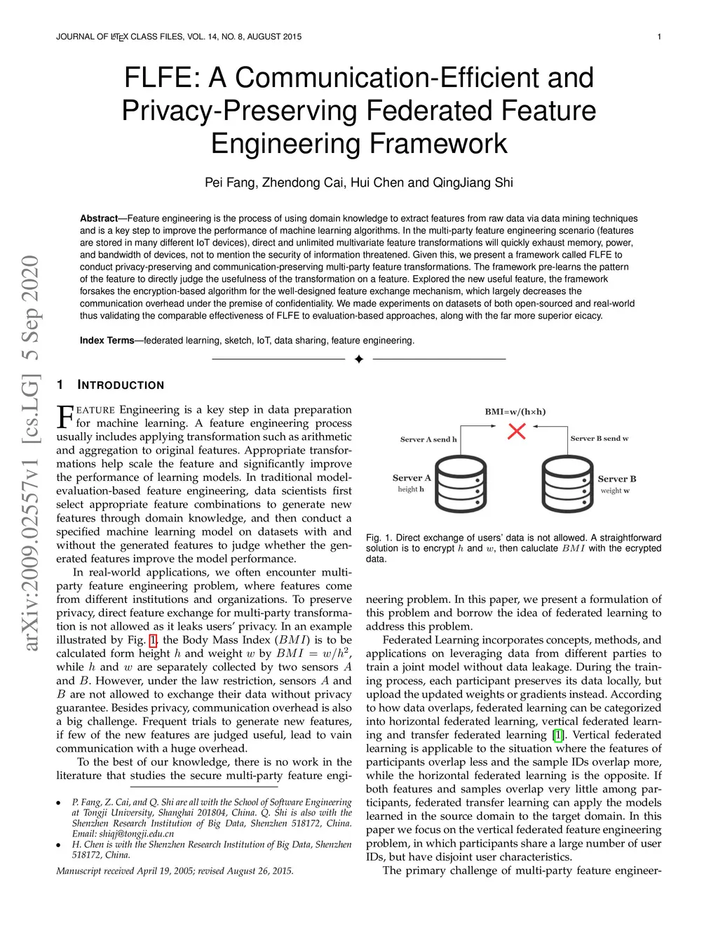 FLFE: A Communication-Efficient and Privacy-Preserving Federated Feature