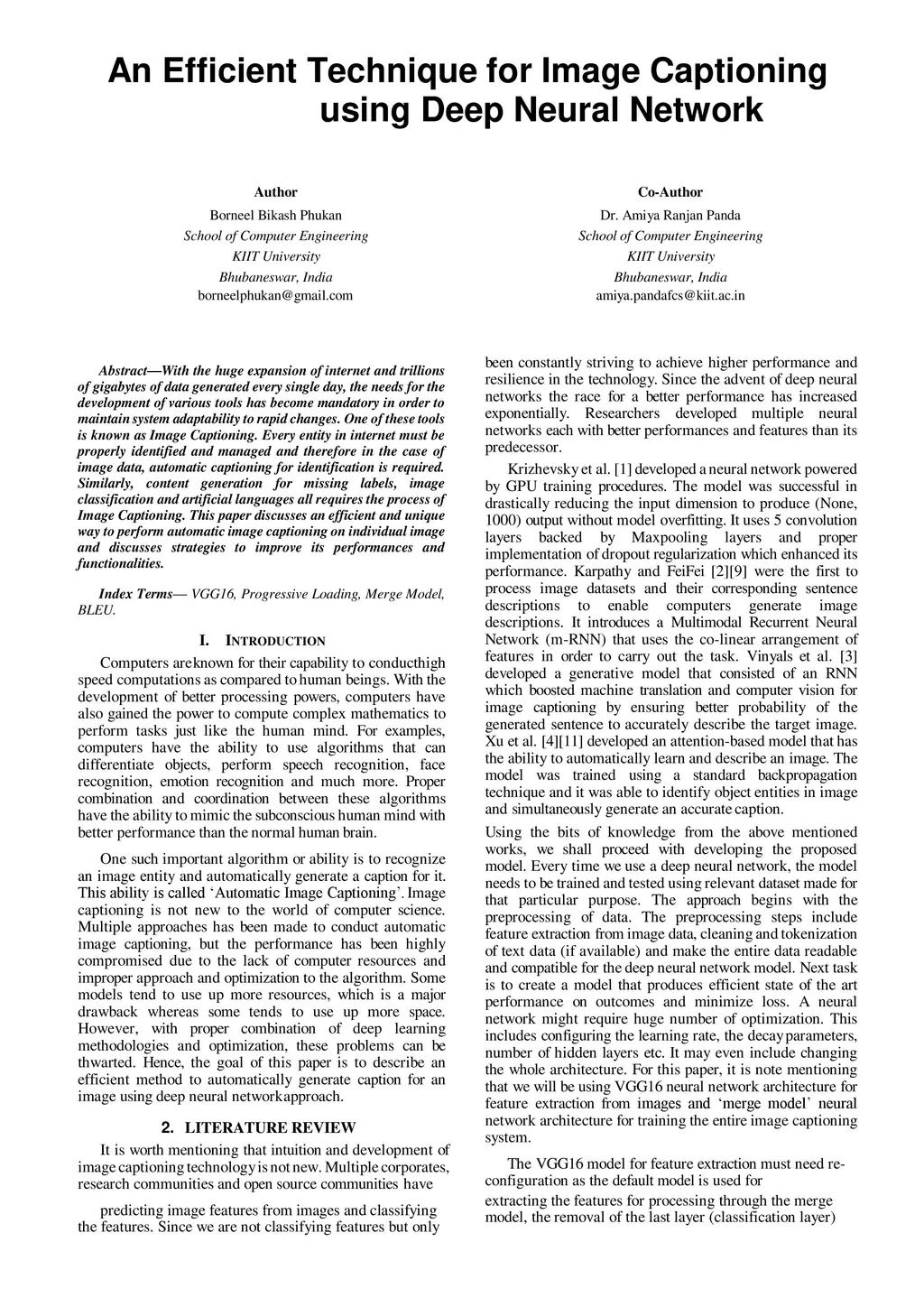 An Efficient Technique for Image Captioning using Deep Neural Network