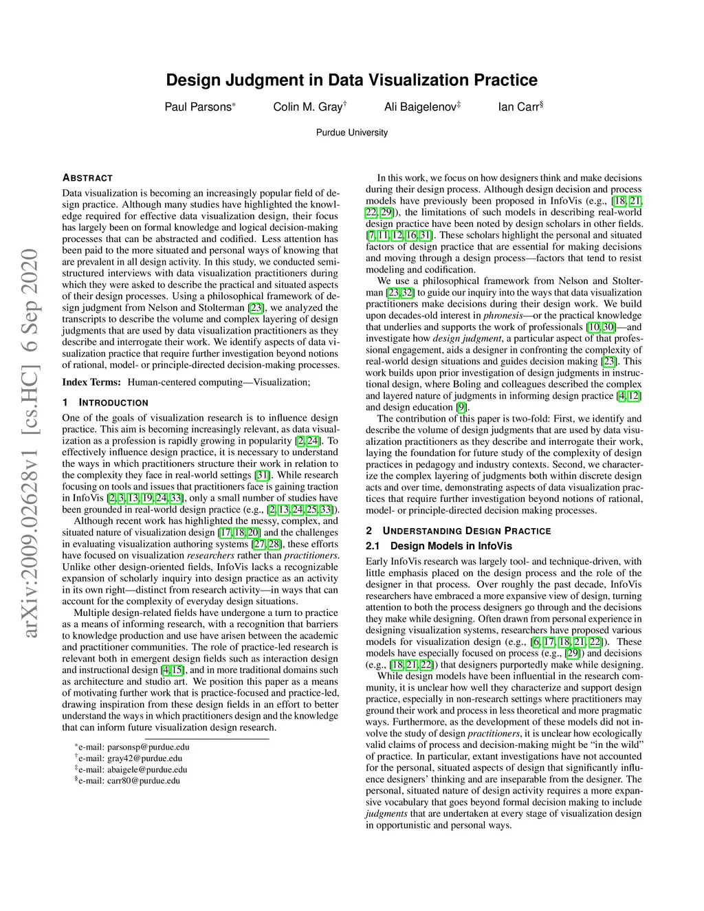 Data visualization is becoming an increasingly popular field of design practice. Although many studies have highlighted the knowledge required for effective data visualization design, their focus has largely been on formal knowledge and logical decision-making processes that can be abstracted and codified. Less attention has been paid to the more situated and personal ways of knowing that are prevalent in all design activity. In this study, we conducted semi-structured interviews with data visualization practitioners during which they were asked to describe the practical and situated aspects of their design processes. Using a philosophical framework of design judgment from Nelson and Stolterman [23], we analyzed the transcripts to describe the volume and complex layering of design judgments that are used by data visualization practitioners as they describe and interrogate their work. We identify aspects of data visualization practice that require further investigation beyond notions of rational, model- or principle-directed decision-making processes.