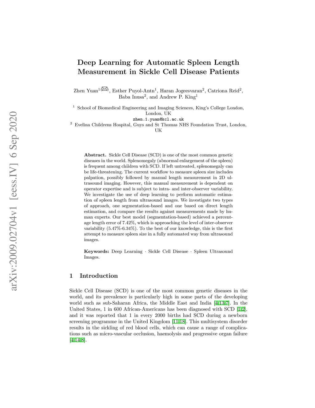 Deep Learning for Automatic Spleen Length Measurement in Sickle Cell