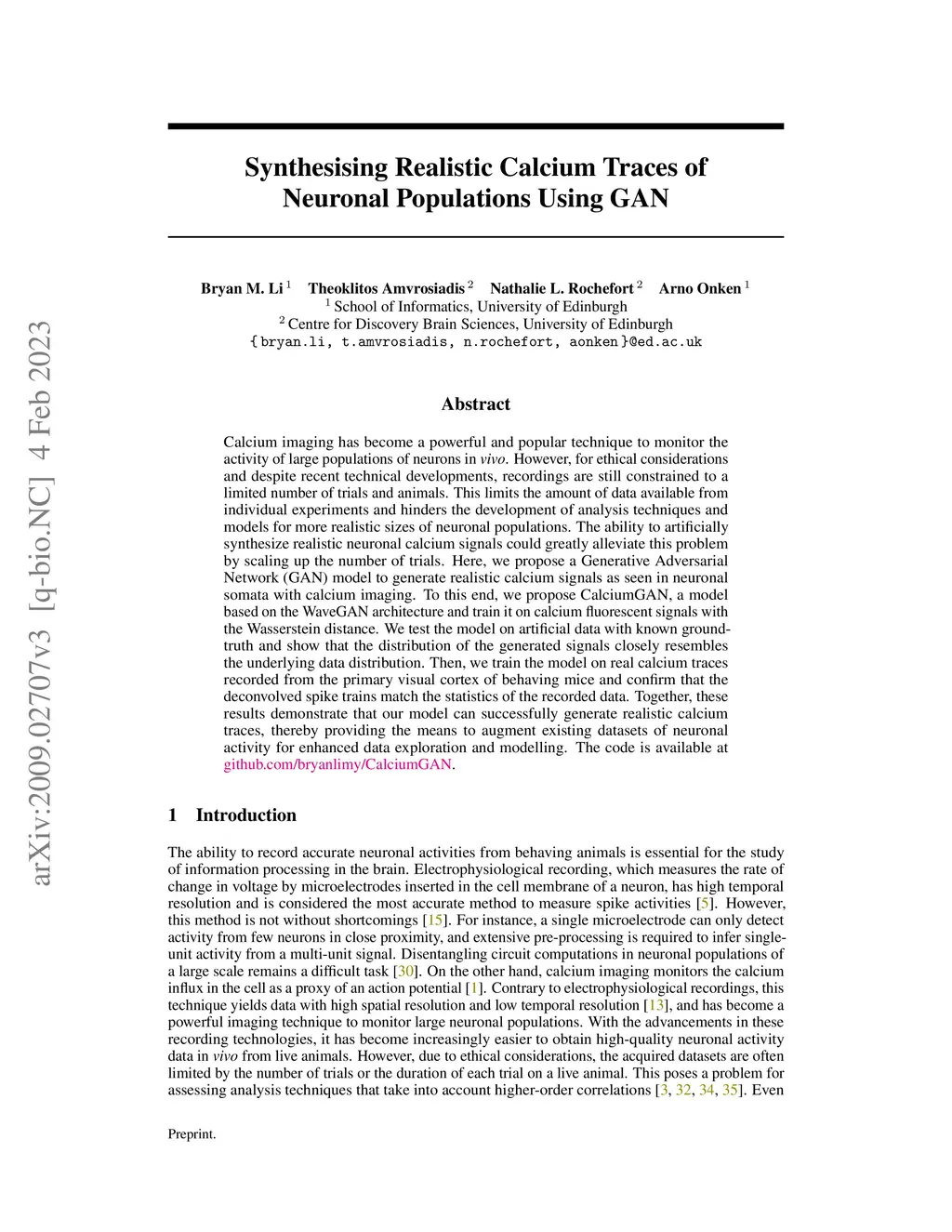 CalciumGAN: A Generative Adversarial Network Model for Synthesising