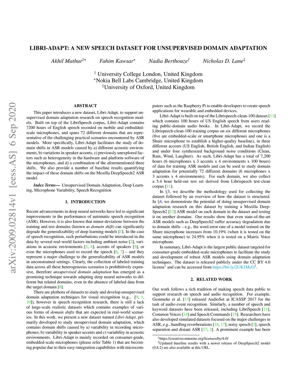 Libri-Adapt: A New Speech Dataset for Unsupervised Domain Adaptation